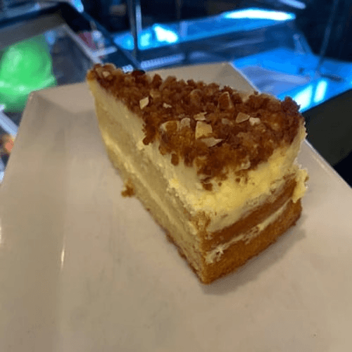 Vanilla sponge, Italian pastry cream, chopped almonds